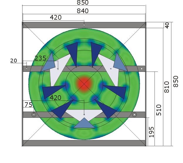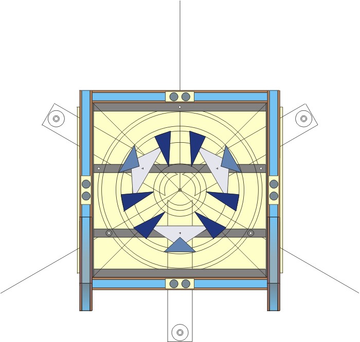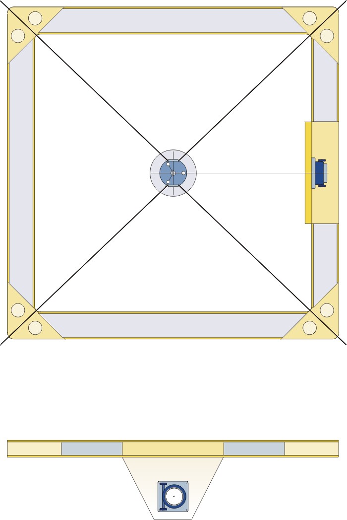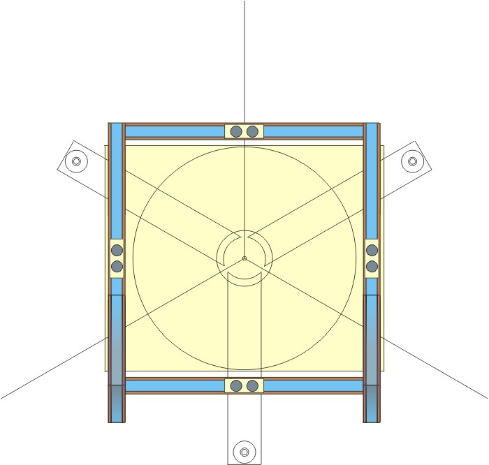 points de fixation des 8 tubes alu de 40 mm sur les quatre côtés