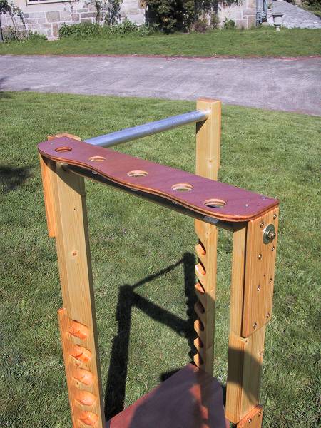 Dans ma version, les tubes d'aluminium du haut et du bas sont fixes (il y a une tige filetée à l'intérieur qui maintient le sandwich) ; les deux autres tubes sont libres et peuvent être glissés dans les encoches (10 niveaux, de 10 à 80 cm de hauteur).