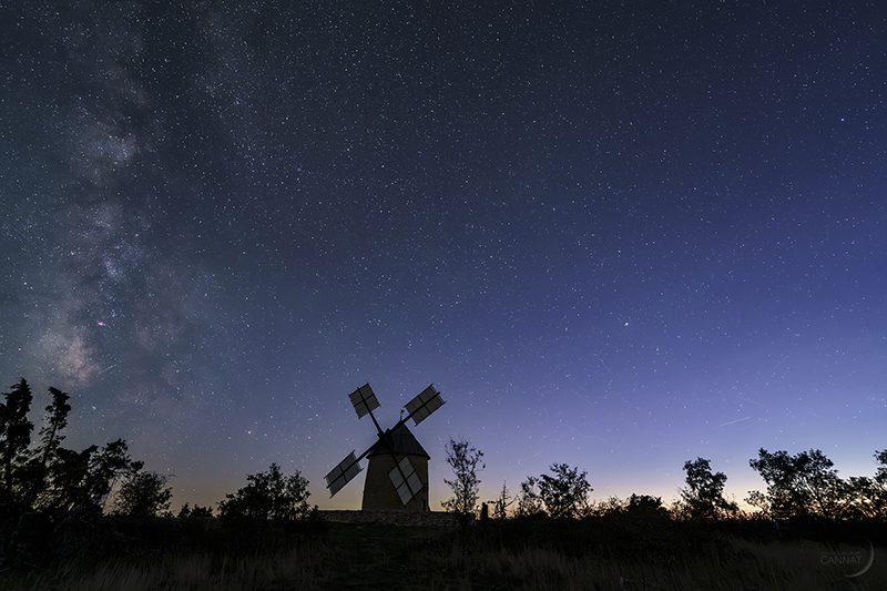 Au cœur du causse Méjean (Cévennes), la Voie lactée fait son apparition dans le ciel crépusculaire encore bleuté au-dessus du moulin de la Borie. À l’œil nu, on ne perçoit alors qu’une sorte de brume immobile et blanchâtre environnée d’étoiles, mais une pose photographique à haute sensibilité met déjà en évidence la richesse et les subtiles colorations de la tranche galactique. Technique : boîtier Sony A7IIId avec un objectif Sony GM de 14 mm diaphragmé à 3,5 ; 15 secondes de pose à 6 400 ISO.